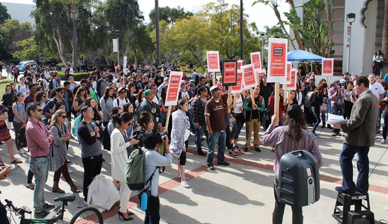 Estudiantes y trabajadores de la Universidad Estatal de San Diego (San Diego State University, SDSU), de California, y de la Universidad de Nueva York (New York University, NYU) se movilizaron el jueves en defensa de los derechos de inmigrantes y refugiados y para repudiar la construcción de un muro en la frontera con México, la deportación de decenas de miles de obreros indocumentados, y la enorme expansión de fuerzas de seguridad fronterizas y campos de concentración.