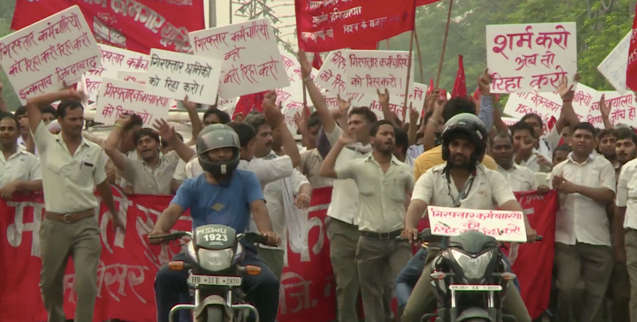 El 10 de marzo de 2017, 13 trabajadores de la ensambladora de automóviles de Maruti Suzuki India Limited en Haryana, en el norte de la India, incluyendo a todos los líderes del sindicato Maruti Suzuki Workers Union (MSWU) fueron declarados culpables del asesinato en el 2012 de un gerente de la empresa, durante una riña e incendio provocados por la gerencia de la fábrica, y condenados a cadena perpetua. Se trata de un fraudulento montaje, producto de una conspiración entre la empresa y el estado.