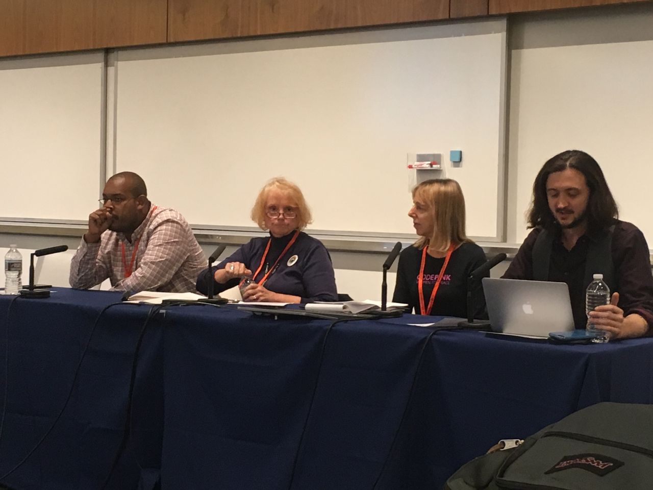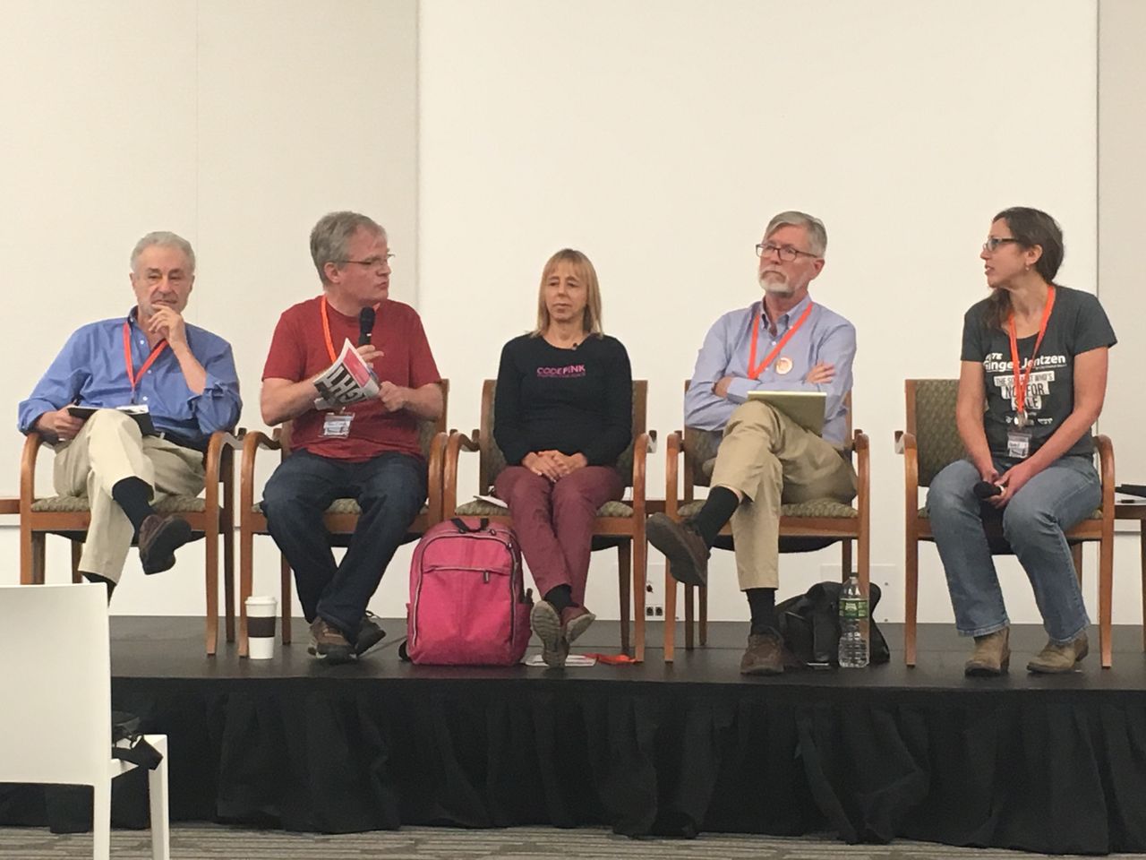 En la charla “Alejándonos del borde: deteniendo la máquina de la guerra”, ningún ponentes siquiera mencionó el sistema capitalista ni ofreció una explicación de las fuerzas que impulsan al imperialismo estadounidense. La panelista Medea Benjamin, fundadora de Code Pink, habló principalmente acerca del conflicto en Corea y presentó su tesis de que “las mujeres son las que nos van a sacar de este desastre”.