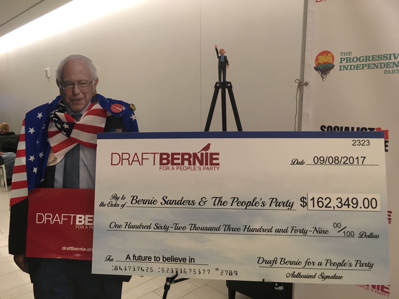 El 8 de setiembre, alrededor de 60 autodenominados “progresistas” encabezaron una marcha hasta la oficina del senador Bernie Sanders en Washington D.C. Su misión era entregarle una petición con 50 000 firmas, junto con un cheque de $162 000 de donantes para persuadir al excandidato presidencial a formar un nuevo partido político. Sanders fue informado con antelación, pero no se hizo presente para recibir la solicitud y, en cambio, se aseguró de que nadie estuviese en su oficina tampoco. Tampoco ha hecho declaraciones al respecto.