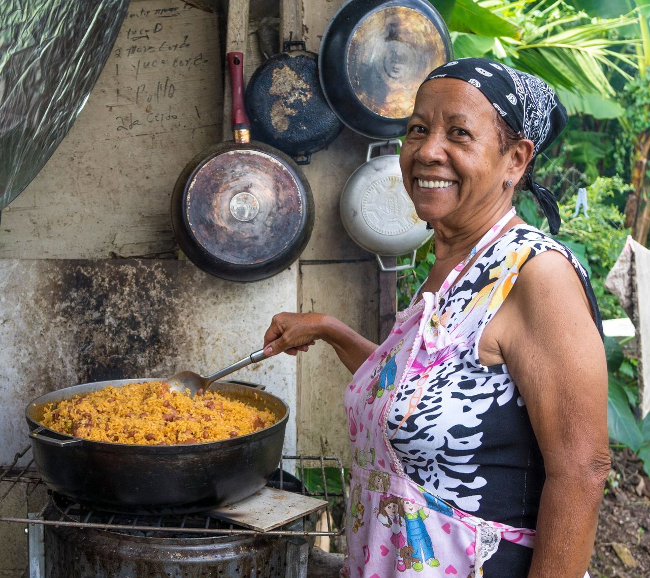 Adelaida Montañez tiene 69 años y en este momento cocina arroz con habichuelas en una estufa a leña afuera de su hogar en Caguas, Puerto Rico, a veinte millas (33 Kilómetros) de San Juan, la capital de la isla; cuenta que el pueblo no ha tenido ni luz ni agua desde que huracán María, hace casi tres meses. La merienda que preparara es para vender.