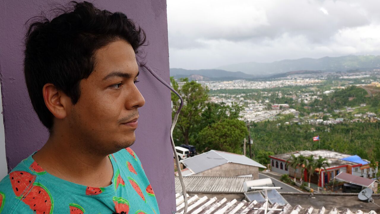 Nos muestra la vista desde su balcón. “Cuando nos despertamos al día siguiente, my familia y yo vimos el panorama. Notamos todas estas pequeñas casas en el cerro de enfrente que nunca habíamos notado. Así es en todo Puerto Rico. Los árboles ya no esconden la pobreza”.