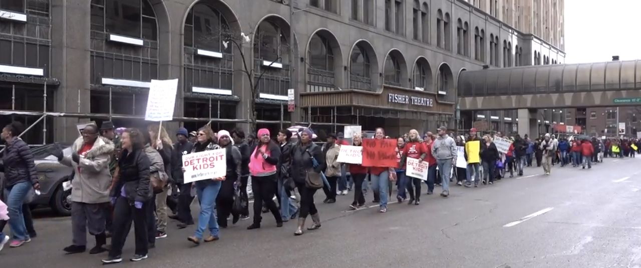 En 2015-16, los docentes de Detroit captaron la atención nacional organizando una serie de acciones laborales espontáneas para exigir escuelas seguras y con condiciones sanitarias, tasas decentes de paga y financiación adecuada del distrito devastado por una década de gerentes de emergencia nombrados por el Estado. Usando las redes sociales, docentes de base organizaron paros utilizando bajas médicas, desafiando a la Federación de Docentes de Detroit (DFT), y fueron apoyados todo a lo largo de los EUA e incluso desde el extranjero.