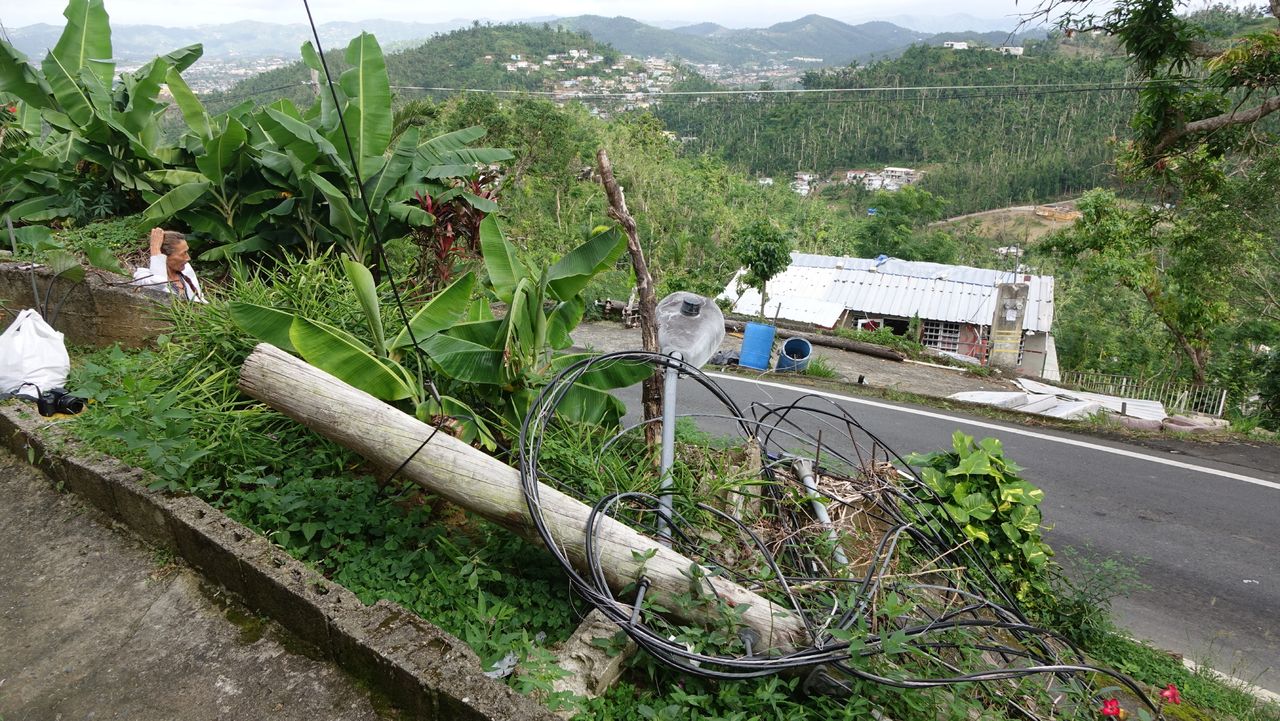 En donde vivo, una comunidad rural en las afueras de San Juan, hay cables y postes de electricidad caídos al lado de la carretera. Algunos predicen que no se tendrán luz hasta marzo o después. La falta de electricidad también significa la falta de agua a sus casas, porque se requieren bombas para poder llevar el agua a las comunidades elevadas en las montañas. Significa que tenemos que guardar el agua de la lluvia para bañarnos, lavarnos las manos en un arroyo cercano y usar agua embotellada para cocinar. Las tablas para lavar ropa andan de moda.