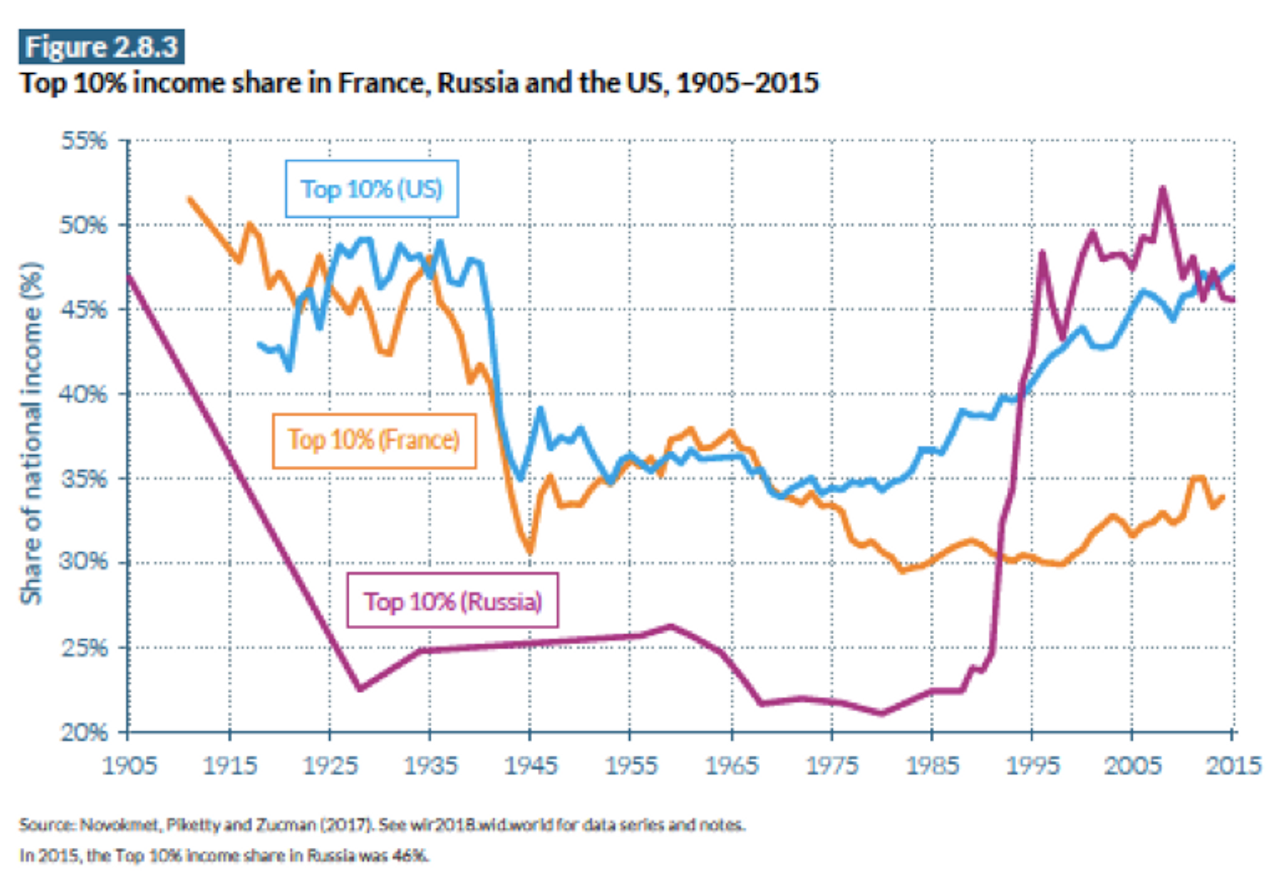 Impacto de la revolución rusa y disolución de la Unión Soviética en la desigualdad mundial