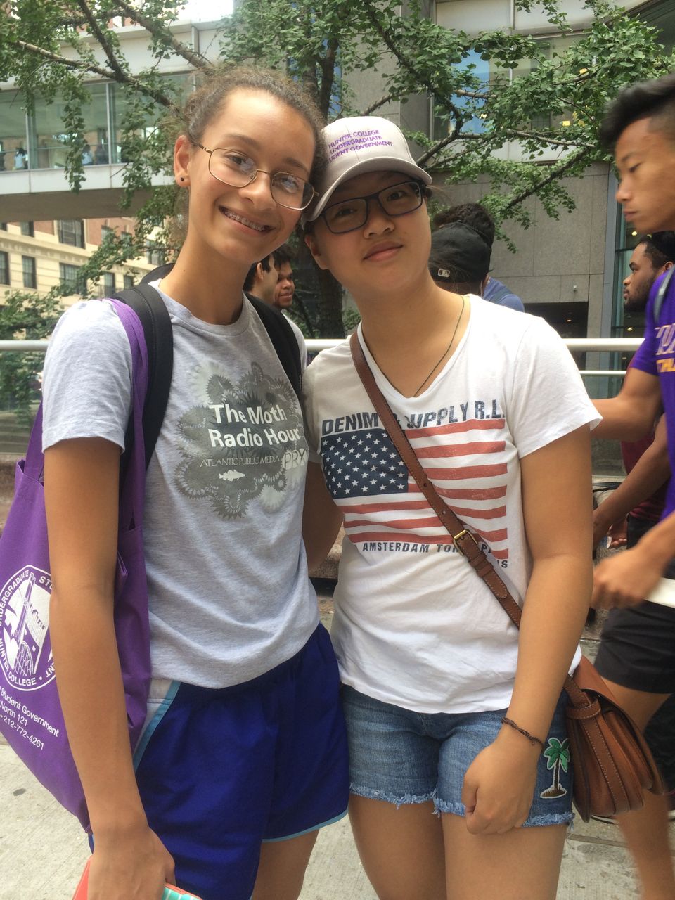 Angel y Val se detuvieron para conversar en la mesa de JEIIS en Hunter College, en la Ciudad de New York. Angel dijo, “Creo que, si tuviéramos socialismo en vez de capitalismo, podríamos darles viviendas a todos en la calle, tener educación gratis. Si no hubiera clases [sociales], podríamos trabajar juntos y estar seguros de que los ricos no sigan enriqueciéndose. Debemos dividir la riqueza igualmente”.