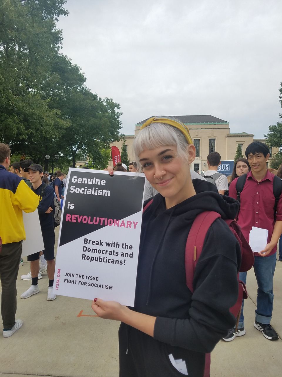Ryan, un estudiante de Western Michigan University, preguntó por qué se debería unir a JEIIS en vez de al DSA. Los miembros de JEIIS le explicaron que el DSA es una sección del Partido Demócrata. A diferencia del DSA, JEIIS es internacionalista, tratando de unir a todos los trabajadores y la juventud por todo el planeta en un movimiento masivo por el socialismo. Esto significa, sobre todo, una ruptura política y definitiva con los Partidos Demócrata y Republicano, y también los sindicatos nacionalistas que intentan contener la oposición de las masas con una política proempresarial. En vez, JEIIS llama a construir un partido político independiente para la clase obrera, para el derrocamiento del capitalismo y la creación de un Estado obrero.