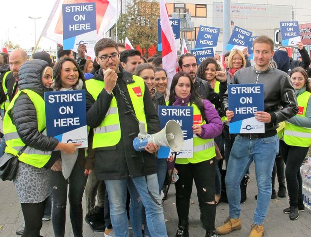 Las tripulaciones de cabina, en su mayoría jóvenes mujeres, que se manifestaron en Berlín y Frankfurt, cantaron consignas y lemas similares", "¡Sin derechos, sin vuelos!" y “bajos salarios, bajos beneficios”.