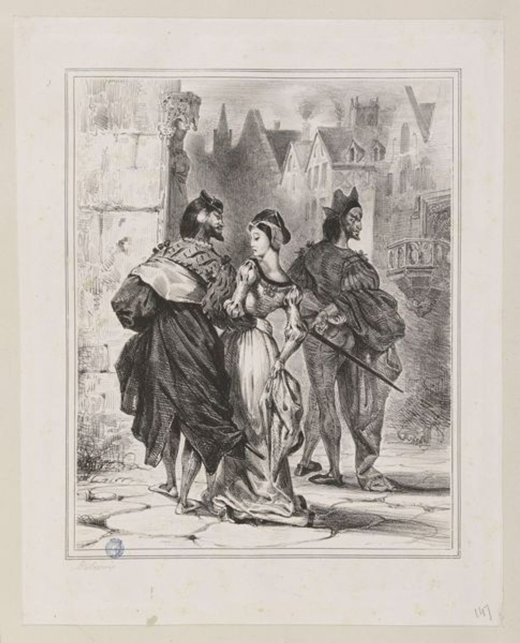 Delacroix a menudo recurrió a fuentes literarias para temas, particularmente a obras de Lord Byron y Sir Walter Scott, así como a Shakespeare. Lo más sorprendente de la exposición es la serie de 18 litografías que Delacroix creó en 1826-27 para ilustrar al poeta y dramaturgo alemán Fausto de Goethe. El conjunto de impresiones no solo ilustra magníficamente el salvaje y sobrenatural relato del doctor que vende su alma al Diablo a cambio de un conocimiento ilimitado y placer mundano; demuestran el dominio de Delacroix de una técnica relativamente nueva en el grabado. También incluyen encantadores bocetos de animales y otras anotaciones en los márgenes que no habrían aparecido en la gran edición en folio impresa en 1828, una copia de la cual también estaba en exhibición.