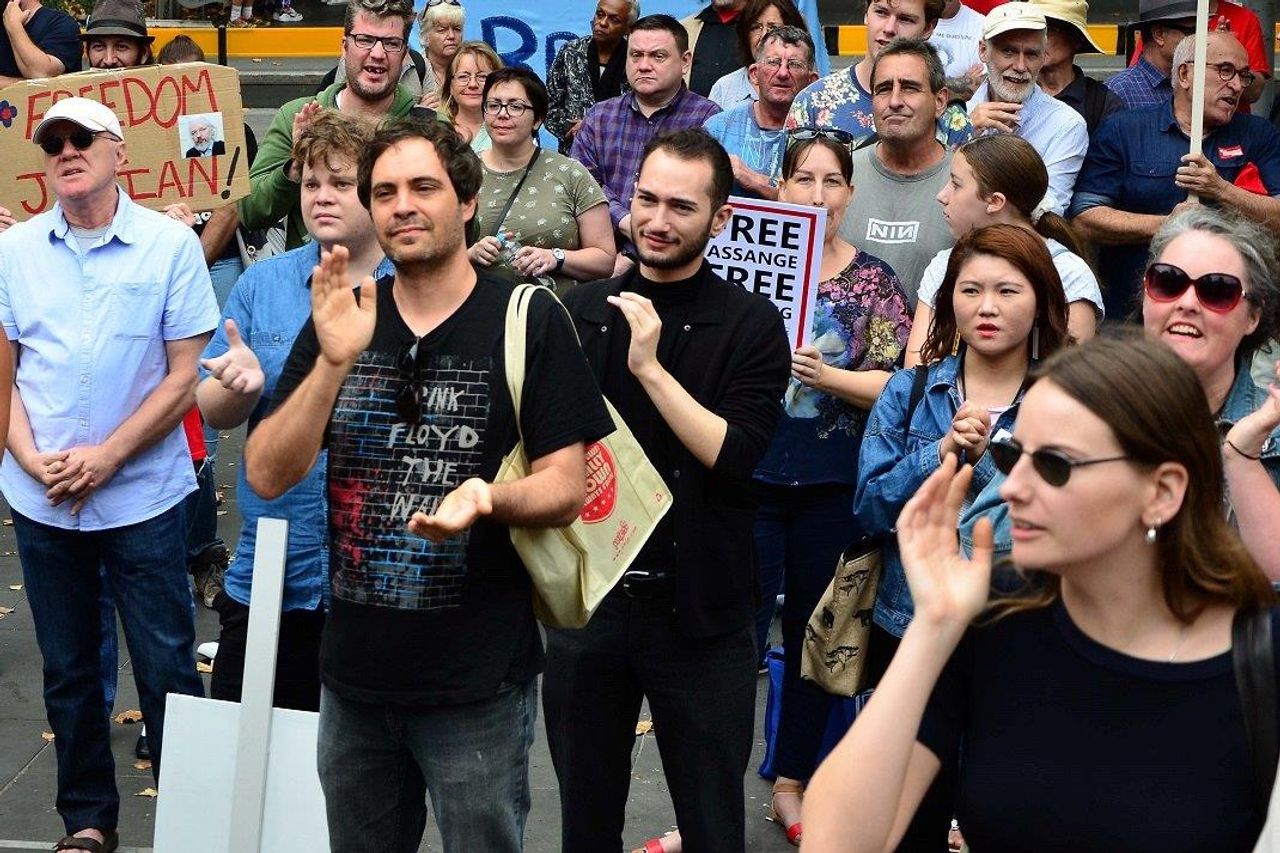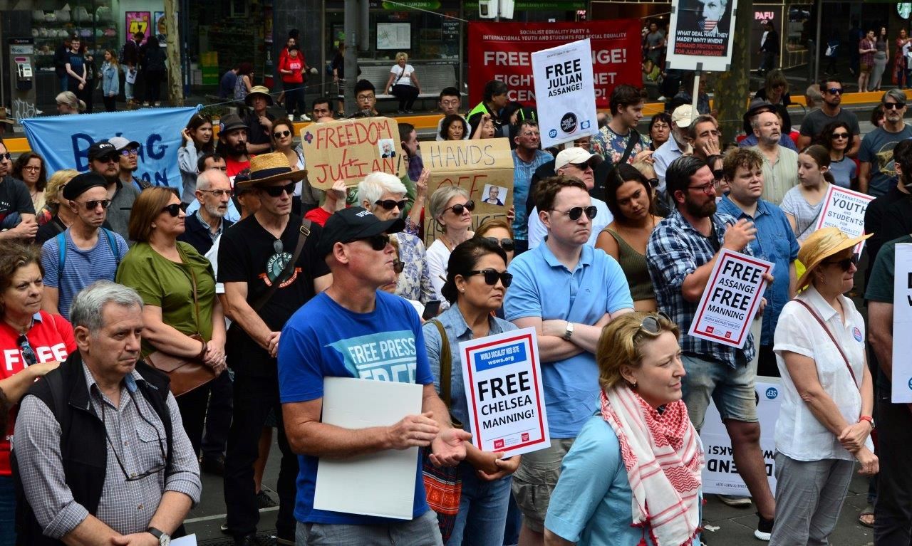 A la manifestación de Melbourne asistieron alrededor de 300 trabajadores, estudiantes, jóvenes, profesionales y jubilados. Entre los participantes había personas que conocían a Assange y a su madre Christine cuando vivían en Melbourne hace años. Destacados simpatizantes de WikiLeaks estuvieron presentes, incluyendo a la conocida periodista independiente Caitlin Johnstone.