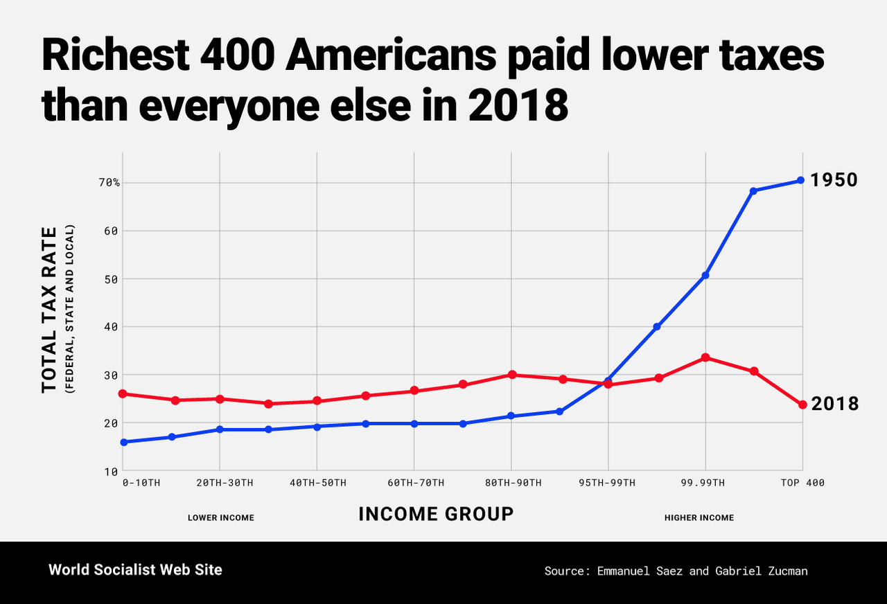 Sin embargo, el último medio siglo de contrarrevolución emprendida contra la clase trabajadora hace que la naturaleza parasitaria de la élite gobernante sea absolutamente clara, y subraya el hecho bien conocido de que Estados Unidos está gobernado por una oligarquía que controla el sistema político. Ni los demócratas ni los republicanos, quienes representan a esta oligarquía y son responsables del sistema tributario, harán ningún esfuerzo para implementar la modesta propuesta de Saez y Zucman.