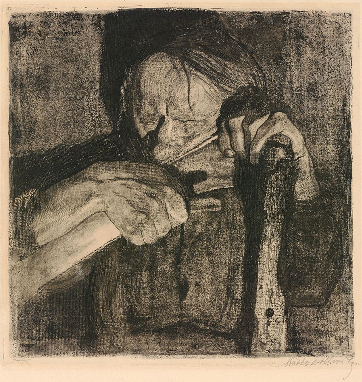 Dejando a un lado los elementos menos importantes y enfocando la imagen de sus sujetos, Kollwitz, utiliza técnicas precisas, complicadas y minuciosas para recalcar lo más esencial en términos emocionales, estéticos y sociales.