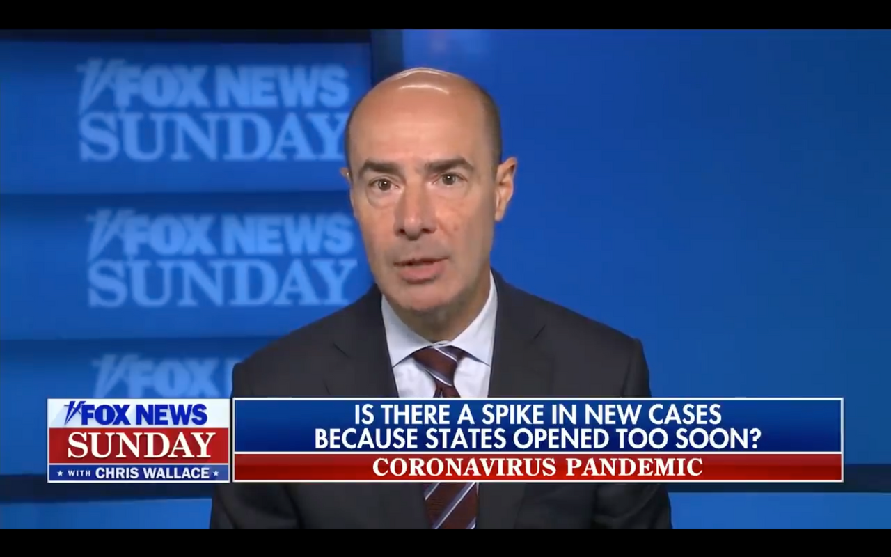 El moderador le preguntó a Scalia sobre una reciente declaración al Congreso del presidente de la Reserva Federal, Jerome Powell, quien advirtió que, a menos que la pandemia fuera controlada, las perspectivas económicas de la nación seguirían siendo inciertas. Scalia desestimó las preocupaciones de la Reserva Federal y se jactó de que siete millones y medio de trabajadores se habían visto obligados a regresar a trabajar en los últimos dos meses. “Lo estamos haciendo muy bien”, declaró. “Necesitamos tener cuidado con el virus, pero soy optimista”.