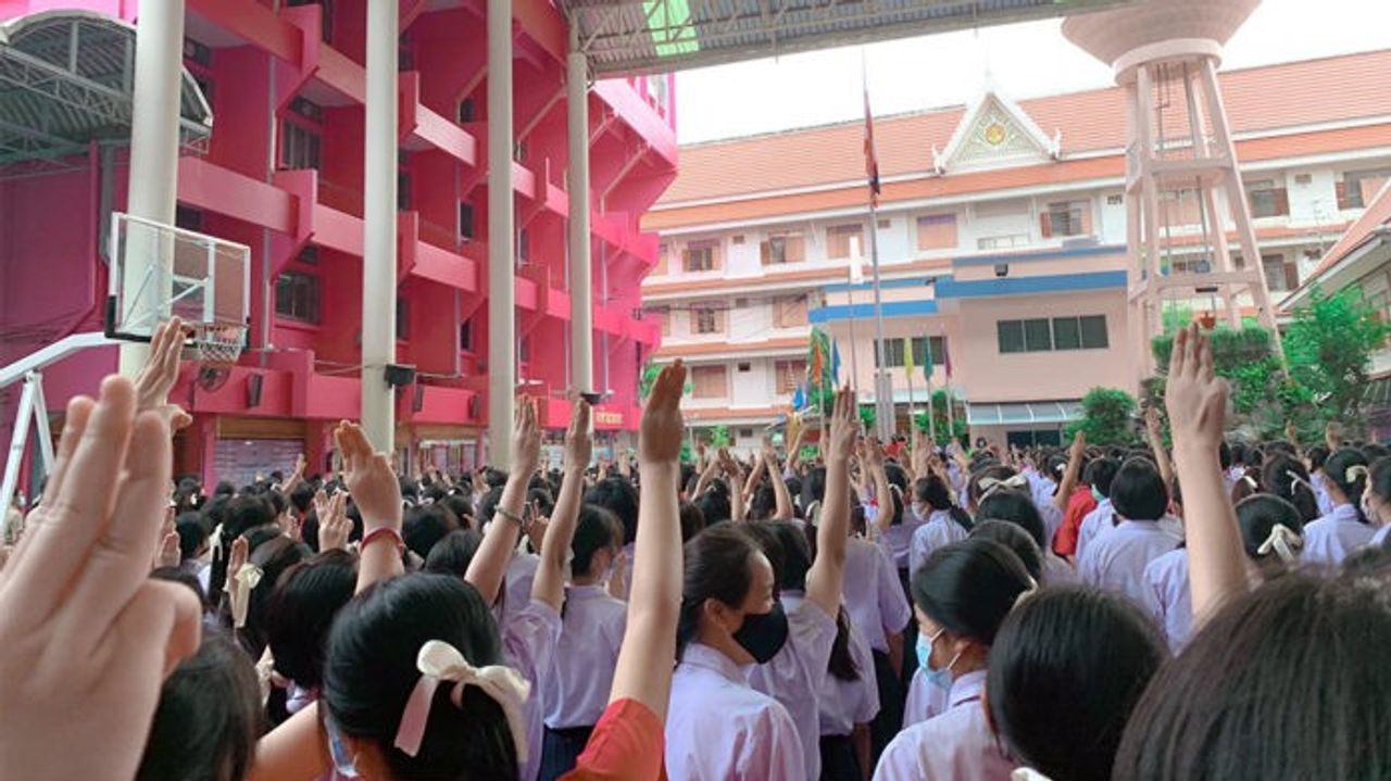 A pesar de estos esfuerzos, el movimiento de protesta sigue creciendo. Esta semana, aulas enteras en al menos ocho escuelas secundarias de Bangkok usaron cintas blancas y levantaron saludos con tres dedos durante el himno nacional, en señal de solidaridad con las protestas. El miércoles, cientos de estudiantes de secundaria se reunieron frente al edificio del Ministerio de Educación, pidiendo mayor libertad en las escuelas y reiterando las tres demandas del movimiento.