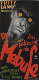 Affiche pour Le testament du docteur MabuseL’autre genre est bien sûr le thriller. Si vous regardez des thrillers weimariens tels M le maudit (1931) ou Le testament du docteur Mabuse (1933) par Fritz Lang, vous constaterez qu’ils présentent un narratif assez sombre, le premier au sujet d’un abuseur d’enfants, l’autre au sujet d’une organisation criminelle importante. Ce type de film s’avérait plutôt populaire à l’étranger. Le caractère sombre des thèmes a trouvait une certaine résonance.