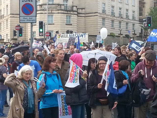 Les enseignants de quelque 3.500 établissements scolaires de Londres, des régions du Sud-Est, du Sud-Ouest, du Nord-Est et de Cumbria ont participé à des arrêts de travail décidés par l’Association nationale des maîtres et des professeurs femmes (NASUWT) et de l’Union nationale des enseignants (NUT). Des manifestations et des rassemblements ont eu lieu partout dans le pays.