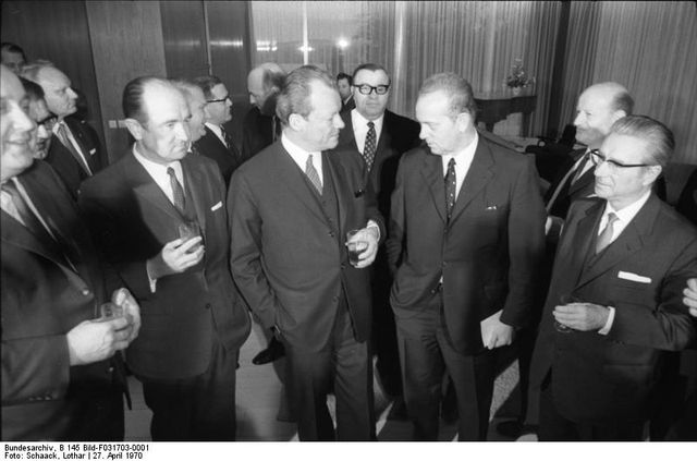 Brandt a aussi rendu un important service à la politique étrangère de la classe dirigeante. Il a amélioré les relations politiques et économiques avec l’Europe de l’Est en mettant un terme à l’intransigeance de l’Allemagne de l’Ouest envers la RDA. Sa nouvelle politique vers l’Est, Ostpolitik, qui s’était tout d’abord heurtée à une opposition féroce de la part des milieux conservateurs, a fourni aux entreprises allemandes de l’Ouest cherchant désespérément à surmonter les effets de la récession, un accès aux nouveaux marchés en Europe de l’Est et en Union soviétique. A long terme, l’Ostpolitik a sapé la stabilité des régimes de l’Europe orientale.
