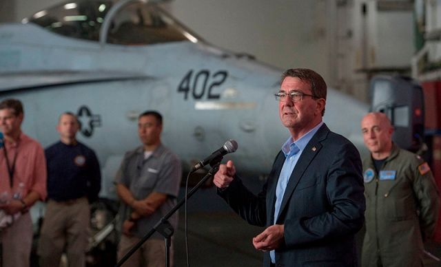 Le secrétaire d’Etat américain à la Défense, Ashton Carter, a profité d’une visite hier sur le porte-avions USS Theodore Roosevelt et d’une conférence de presse à son bord pour lancer de nouvelles menaces provocatrices contre la Chine au sujet de ses revendications territoriales en Mer de Chine du sud.
