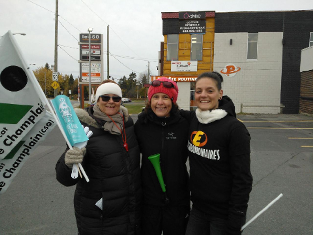 Linda, Mélanie et GenevièveLinda, une éducatrice en service de garde a expliqué pourquoi elle appuyait la grève: «On fait la grève pour améliorer nos conditions de travail, mais aussi pour améliorer les services auprès des enfants. Il y a beaucoup d’élèves en difficulté, mais ils n’ont pas tous les services nécessaires. Les coupures du gouvernement nous empêcheront de répondre à des besoins urgents et essentiels».
