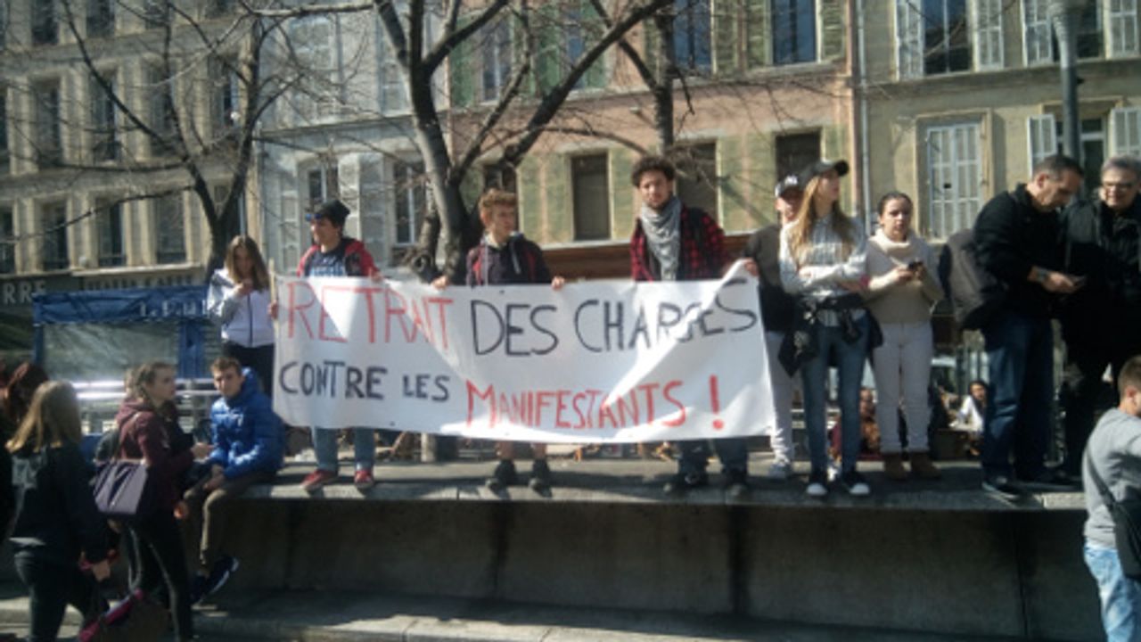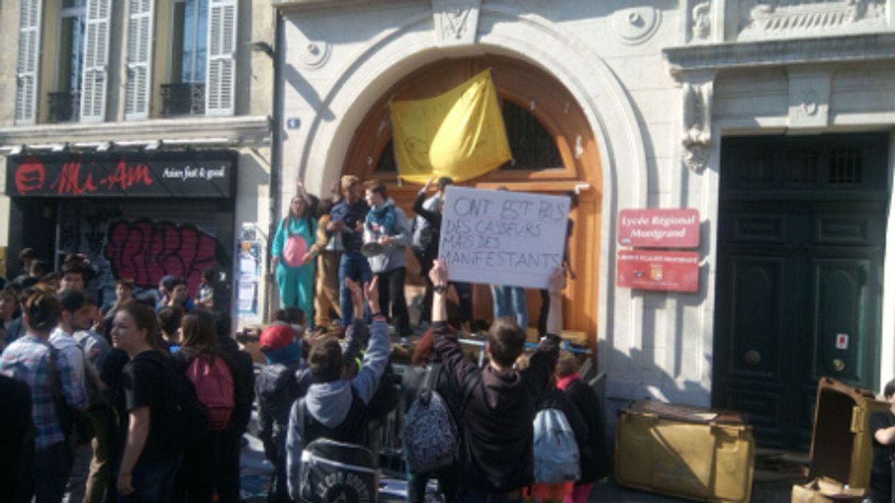 A Marseille, les reporters du WSWS ont parlé aux jeunes mobilisés dans une manifestation qui regroupait des jeunes et des dockers. La manifestation a débuté devant la préfecture où des lycéens bloquaient les portes du bâtiment administratif.