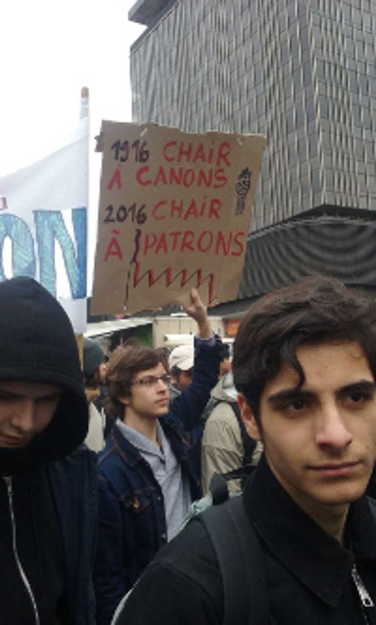 Le WSWS a aussi recueilli les commentaires d'Elliott, un lycéen, alors que la manifestation de jeunes convergeait avec la manif syndicale. Il a expliqué qu'il s'oppose à la loi El Khomri parce qu'elle démantèle des acquis sociaux obtenus par les travailleurs au 20e siècle : « je pense que c’est un retour en arrière, et ça nous fait perdre les acquis sociaux pour lesquels nos grands-parents et nos parents ont combattu. Je n’ai pas envie que ce soit à eux de decider maintenant, l’avenir n’est pas aussi sombre qu’ils nous ont prédit ».