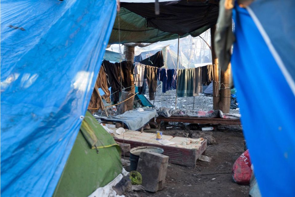 Bien que les températures descendent souvent en dessous de zéro, les gens dorment dans des tentes minces posées dans la boue épaisse, au milieu des ordures et des matières fécales. Les réfugiés reçoivent une nourriture insuffisante et un traitement médical rudimentaire, et souvent contractent des maladies, telles que la pneumonie à cause du froid. Les infrastructures sont improvisées et insuffisantes, avec seulement 32 toilettes, 48 douches, deux endroits avec de l’eau propre, et un câble électrique peu fiable.