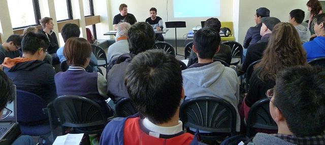 Une partie de l'assistance à la première réunion de l'EJIES de l'Université de MelbourneDans la période précédant la réunion, l'EJIES a mené une vaste campagne parmi les étudiants de l'Université de Melbourne pour démasquer le rôle central de l'impérialisme australien dans les préparatifs des États-Unis et de leurs alliés pour une guerre contre la Chine et la Russie, ainsi que le risque d'une guerre nucléaire mondiale. Cette campagne a fait ressortir le chauvinisme anti-chinois qui est encouragé par les médias et a qualifié de propagande de guerre l'hystérie entourant les «agents d'influence» chinois en Australie.