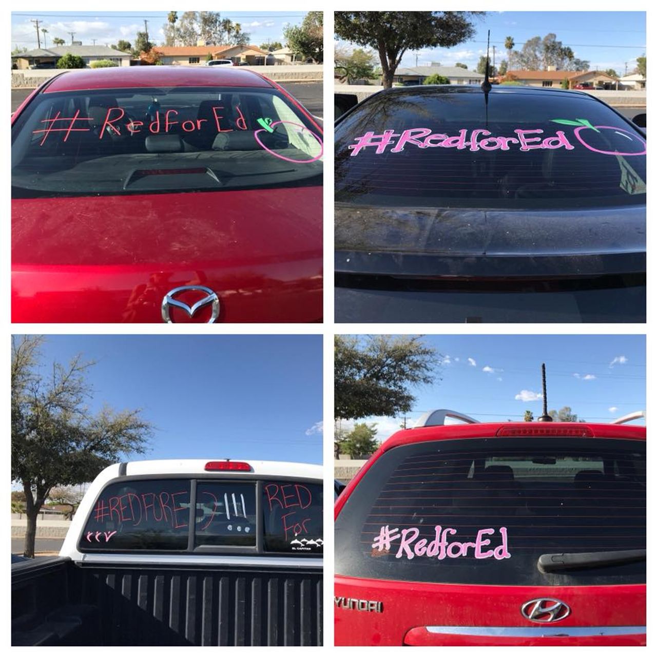 En Arizona, avec 51 000 enseignants, des actions de congés maladies collectifs (sickouts) et des manifestations ont eu lieu cette semaine à mesure que la probabilité d’une grève augmente. Les enseignants utilisent les médias sociaux et distribuent des tracts aux voisins et aux parents indépendamment du syndicat des enseignants, expliquant que l’État a fait des réductions de 371 millions de dollars dans l’éducation depuis 2008.