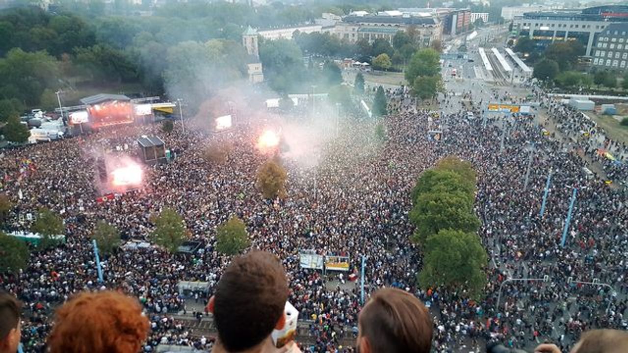 Les prestations de groupes et de rappeurs allemands bien connus, dont Toten Hosen, Kraftklub et Marteria et Casper, ont été interrompues à plusieurs reprises par des slogans antifascistes tels que «Nazis dehors» ou «Alerta Alerta Antifascista». Des manifestations contre l'extrême-droite ont également eu lieu dans d'autres villes le même jour. À Hanovre, environ 3 000 personnes sont descendues dans les rues et à Duisburg, une manifestation de 1 500 personnes a arrêté une marche de 50 partisans du mouvement d'extrême droite Pegida.