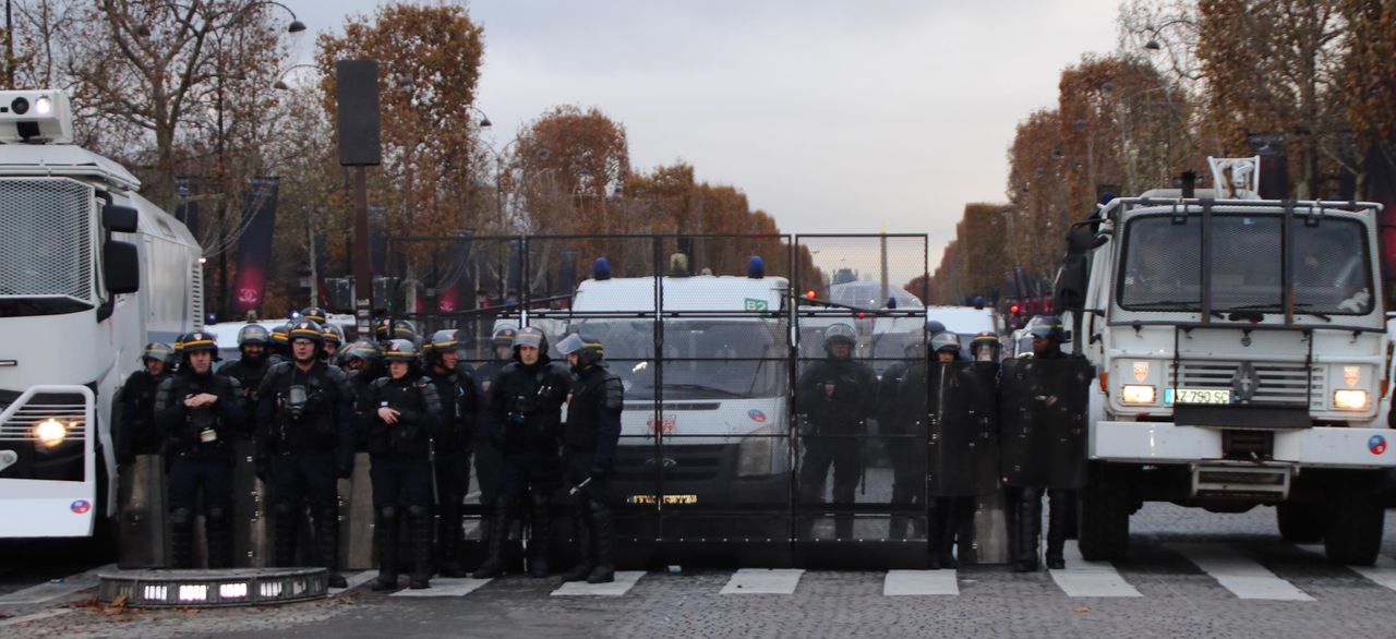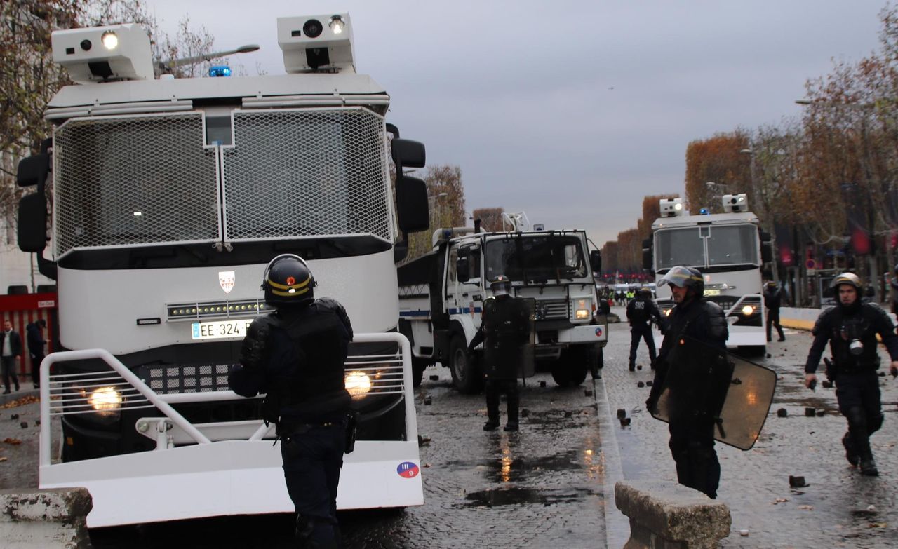 La préfecture avait interdit de manifester à l’extrémité est de l’avenue. Quand les manifestants sont arrivés devant le dispositif de sécurité, la police a fait usage de lances à eau et de lacrymos avant de charger les manifestants. Elle a ensuite attaqué les manifestants ou essayé de les entourer à maintes reprises, en brisant les pavés et les chaises de restaurants à proximité pour établir des barricades.