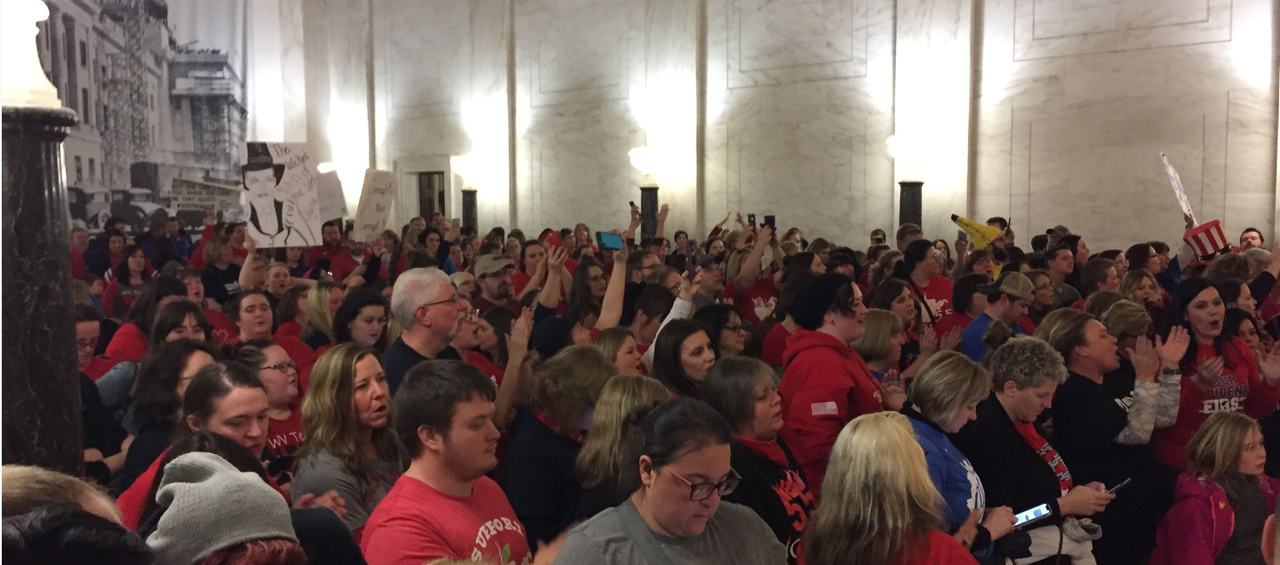 A l’Assemblée législative de Virginie-Occidentale, les députés ont suspendu un projet de loi qui, s’il est voté, joindra de nouvelles attaques de l’éducation publique à de maigres augmentations de salaire. Pour cette raison, ce projet de loi rencontre une opposition massive de la part des enseignants et des employés des services scolaires qui poursuivent leur grève dans tout l’État.