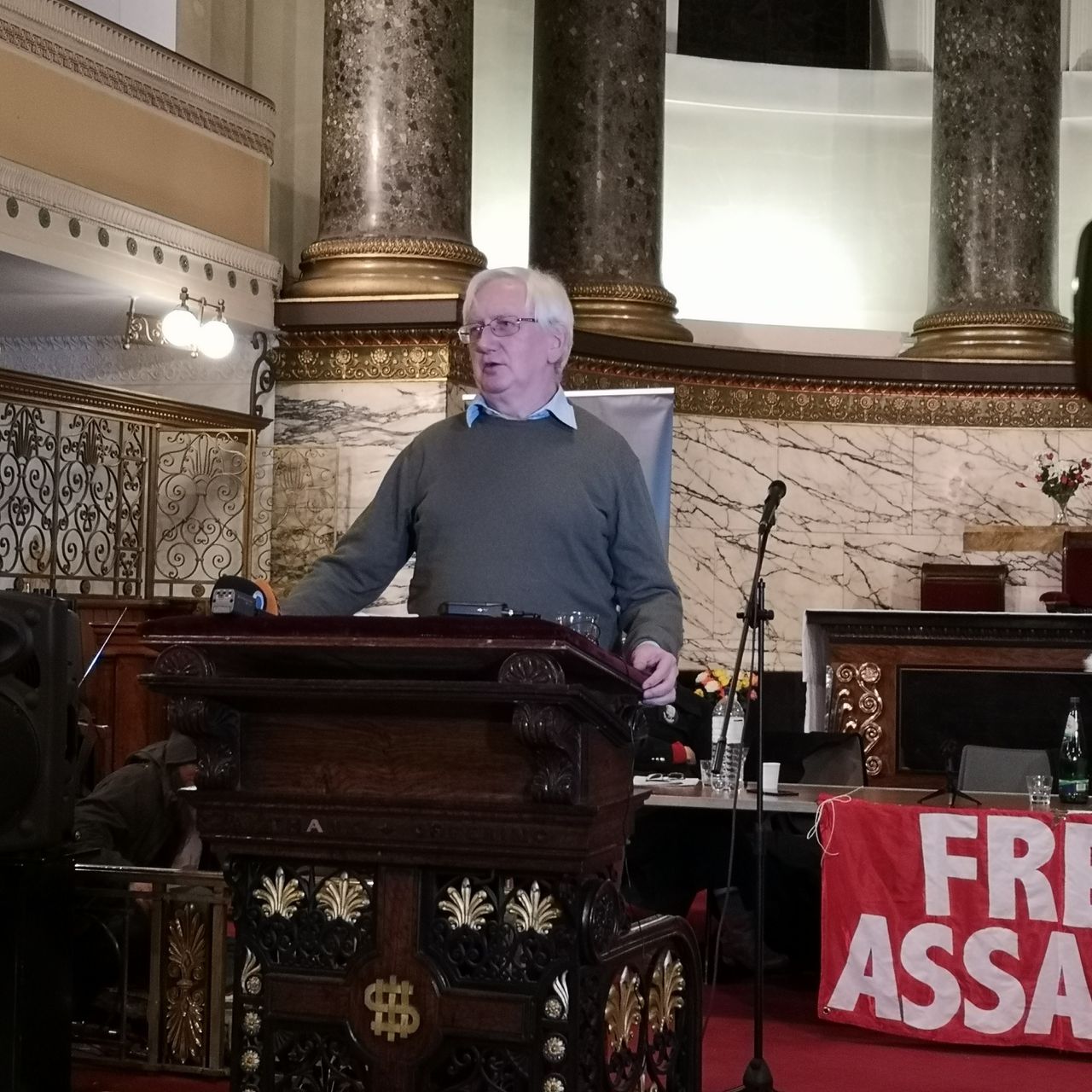 Le dernier orateur, le journaliste australien John Pilger, a déclaré au public qu’il s’était rendu à Assange, à la prison de Belmarsh, plus tôt dans la journée. Il a décrit sa visite avec Julian et le régime de sécurité draconien à l’intérieur de la prison pour les visiteurs et les détenus. Une transcription du rapport de John Pilger sera affichée séparément.