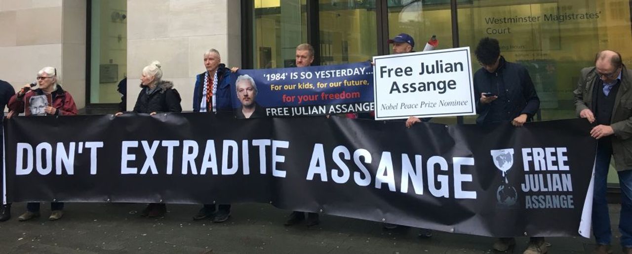 Assange a comparu à une audience de mise en état hier par liaison vidéo depuis la prison de haute sécurité de Belmarsh. Il y est détenu en détention préventive. Sa détention s'appuie uniquement sur une demande d’extradition américaine concernant les publications de WikiLeaks qui ont exposé les crimes de guerre américains en Irak et en Afghanistan.