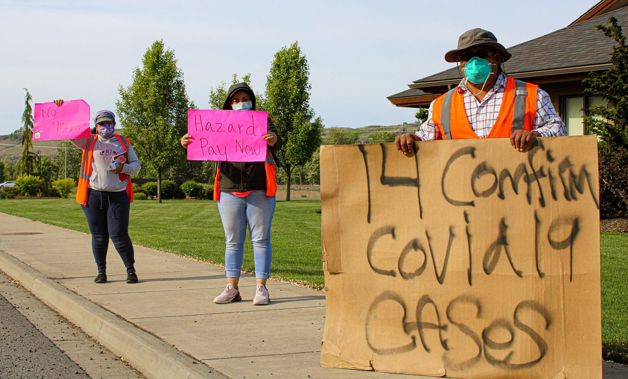 La grève a débuté vendredi dernier lorsque les travailleurs ont quitté une usine Allan Bros. à Naches après que 12 d'entre eux aient été testés positifs et que l'entreprise ait tenté de le leur cacher.