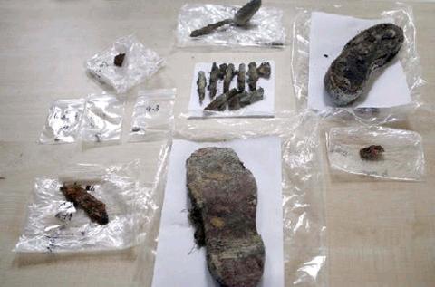 Parmi les objets sortis de la tombe, il y avait des restes humains, des vêtements, des couverts et des munitions.