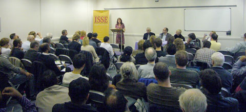Julie Hyland s’adressant à l’auditoire