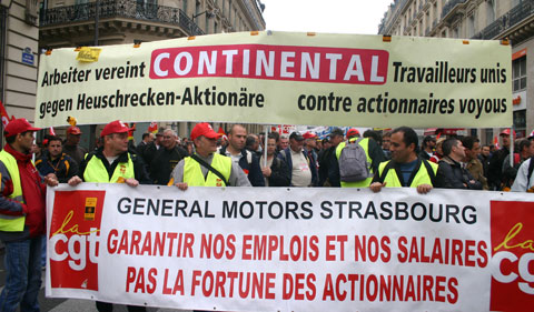 L'animosité s'est développée particulièrement contre Bernard Thibault, le dirigeant de la CGT, qui collabore ouvertement et quasiment au jour le jour avec le programme du président droitier Nicolas Sarkozy et qui consiste à faire payer à la classe ouvrière le prix de la crise économique. Il s'est opposé à toute mesure d'étendre au reste de la classe ouvrière.la lutte menée par les usines menacées.