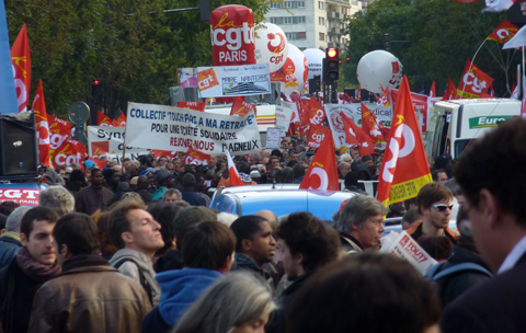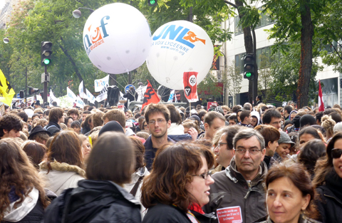 Sarkozy lors de la journée d'action du 19 octobre, organisée par les syndicats.
