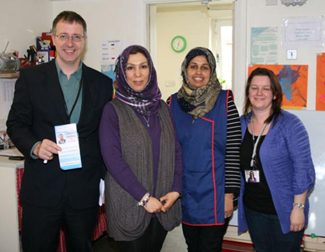 Robert Skelton avec des employées du Centre familial Bushmoor