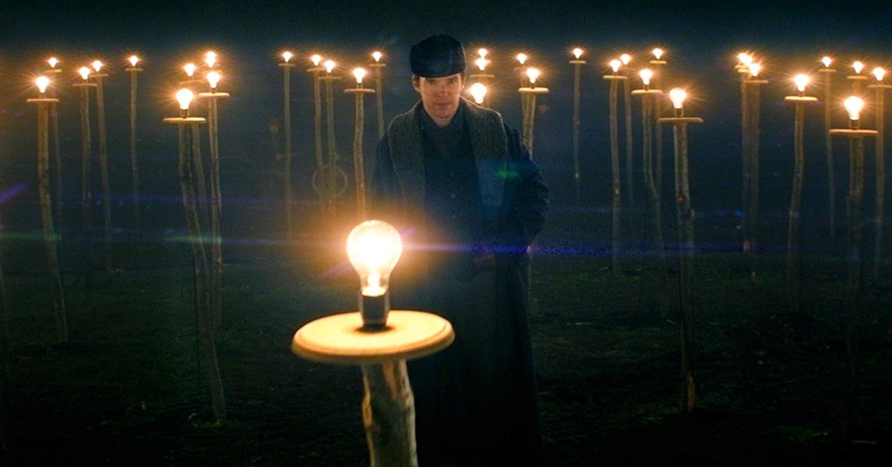 Kalt «Trollmannen fra Menlo Park» [‘The Wizard of Menlo Park’] etter hans industriforskningsanlegg i New Jersey, 40 kilometer fra New York City, sikrer Edison den økonomiske støtten til den pære-nesede finansmannen J.P. Morgan (Matthew Macfadyen) for å belyse fem Manhattan-kvartaler. Edison ansetter deretter den strålende matematikeren og ingeniøren Tesla (Nicholas Hoult) for å bistå til å løse likestrømmens vesentlige problem, det vil si energitapet ved overføring over avstander.
