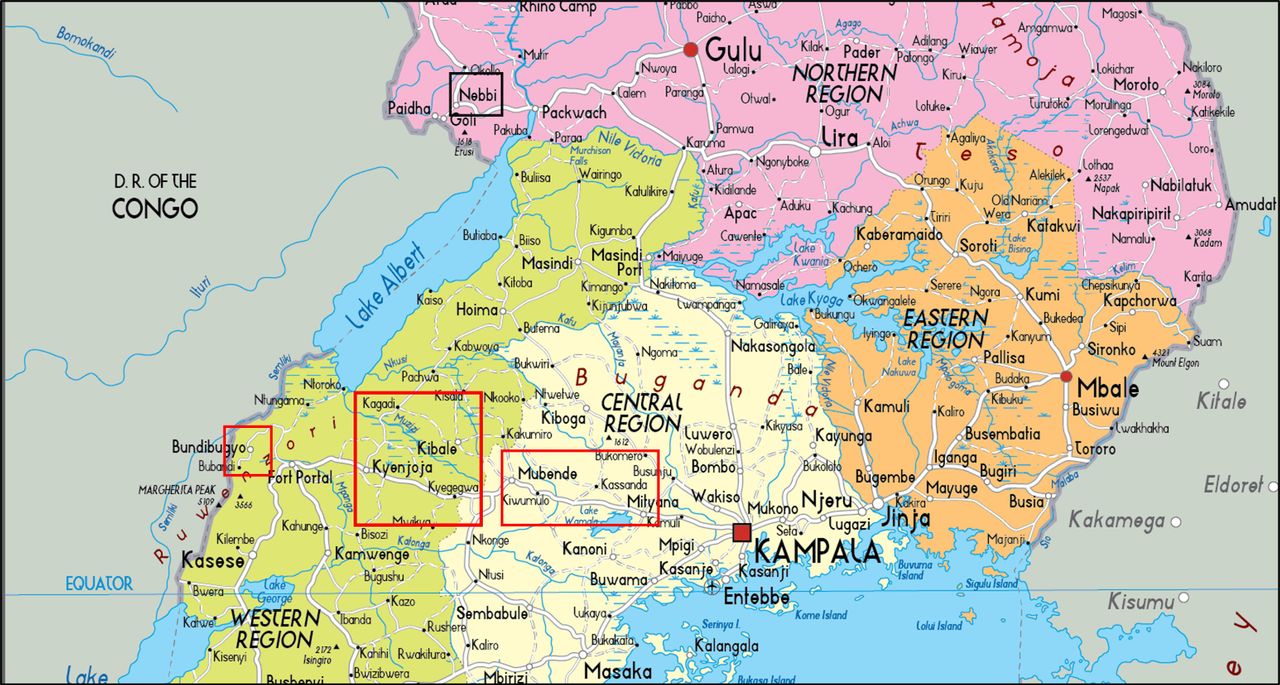 Mer bekymringsfullt er at utbruddet nå har spredt seg til minst fem forskjellige områder, som inkluderer distriktene Mubende og Kassanda i Ugandas Central Region, og distriktene Bunyangabu, Kagadi og Kyegegwa i Ugandas Western Region, begge regionene beliggende i en travel kommersiell korridor som forbinder Kampala med Den demokratiske republikken Kongo (DRC). En fersk rapport i Monitor bemerket imidlertid at en person mistenkt for å være smittet av Ebola døde i det nordlig beliggende distriktet Nebbi, langt unna de nåværende utbruddene.