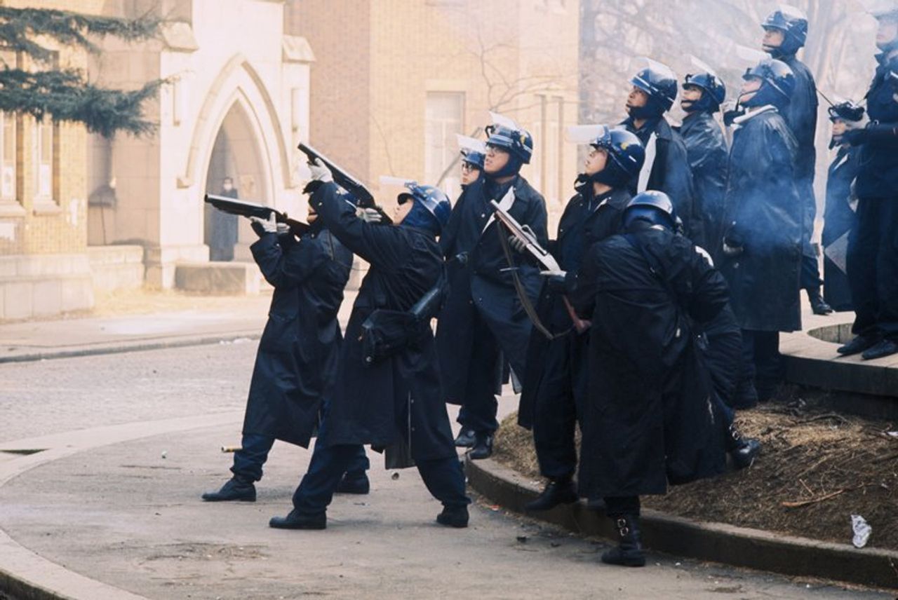 20 января 1969 года более 8 тысяч полицейских спецназовцев прибыли в кампус Токийского университета по просьбе университетских властей, чтобы сокрушить студенческую оккупацию университетских зданий. Применив против протестующих студентов слезоточивый газ, сбрасывавшийся с вертолета, а также водометы, полиции удалось освободить главное здание университета после двухдневной осады. Более 500 студентов были арестованы; 200 полицейских и 30 студентов получили ранения во время столкновений.