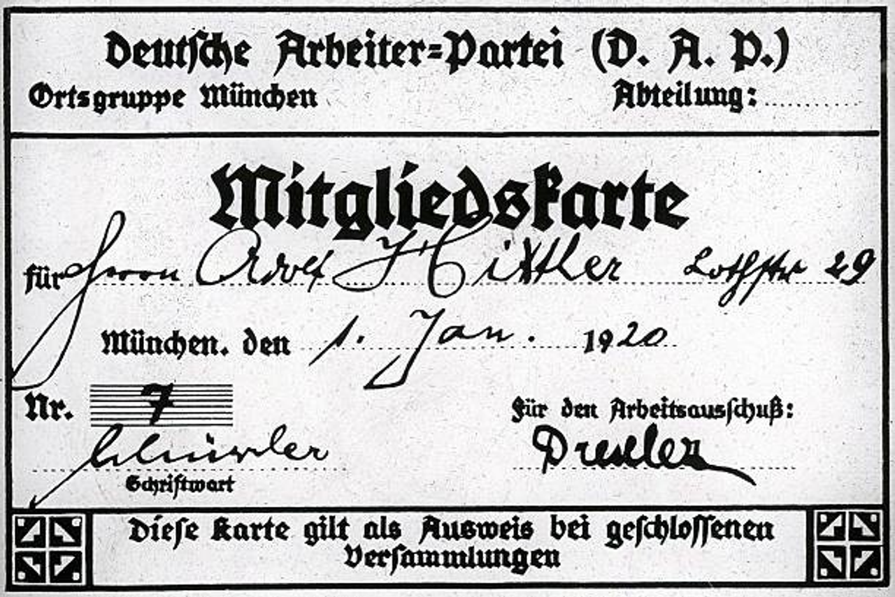 Гитлер стал членом DAP в 1920 году по приказу руководителя подразделения военной разведки, оперативником которой он являлся с 1919 года. После увольнения из армии в марте 1920 года он начал работать в партии на постоянной основе и быстро стал ее ведущим публичным оратором.