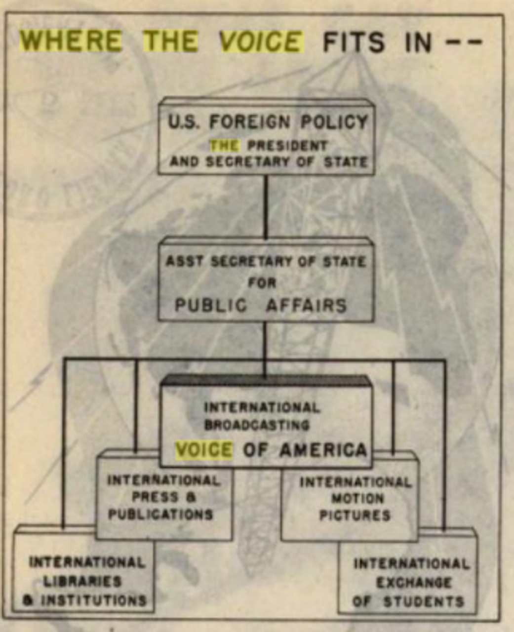17 февраля 1947 года радиостанция «Голос Америки», непосредственно управляемая Государственным департаментом США, передала в эфир свою первую русскоязычную программу на Советский Союз. Хотя первоначальные программы передач, как известно, содержали ограниченное политическое содержание, этот шаг был частью поворота администрации Трумэна к агрессивной стратегии «холодной войны», направленной на сдерживание влияния Советского Союза в Европе и утверждение гегемонии США.