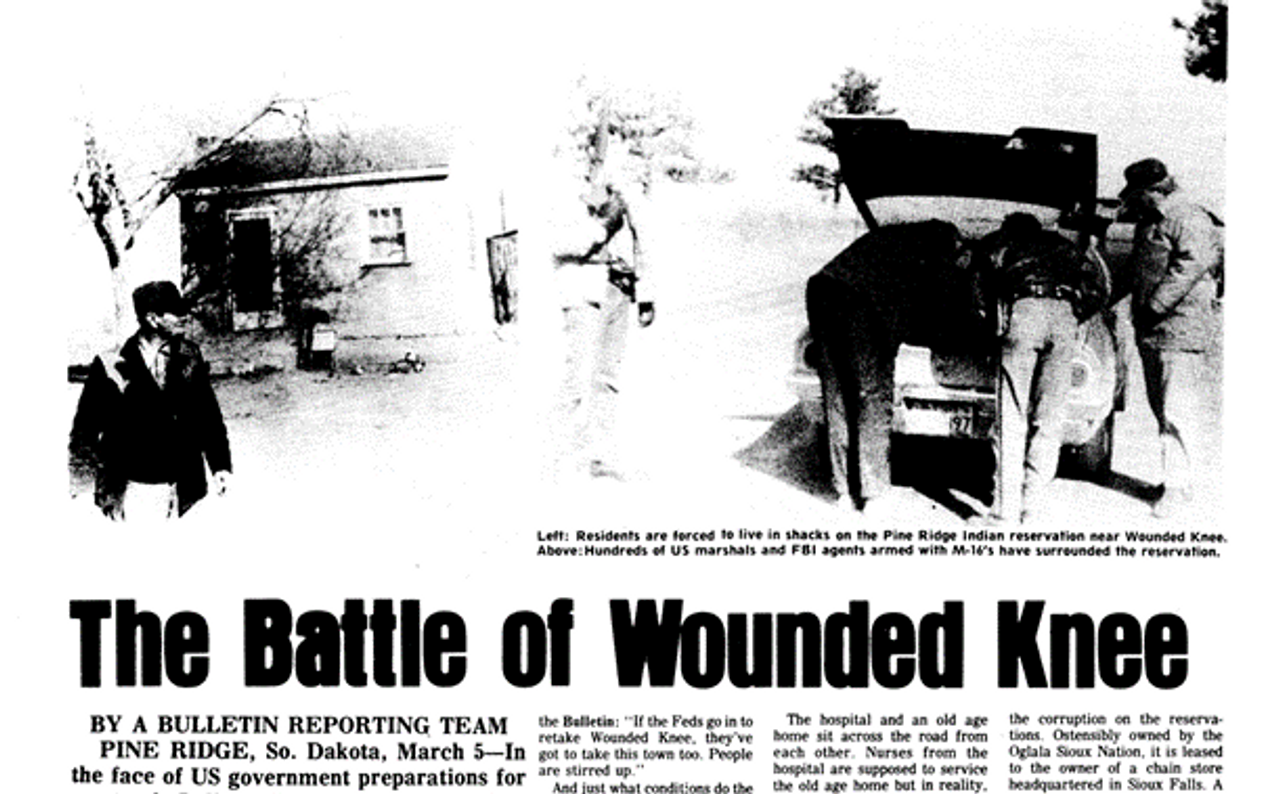 27 февраля 1973 года члены «Движения американских индейцев» (American Indian Movement, AIM) начали 70-дневную вооруженную оккупацию поселения Вундед-Ни («Раненое колено») в штате Южная Дакота, где в 1890 году 7-м кавалерийским полком Соединенных Штатов было убито от 150 до 300 индейцев племени Лакота-сиу, включая женщин и детей. Захватчики селения потребовали от властей федерального расследования условий массовой бедности и политической коррупции в индейской резервации Пайн-Ридж.