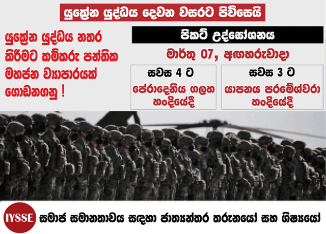 අධිරාජ්යවාදී යුද්ධයට විරුද්ධ වීම සහ පීඩිතයන් ආරක්ෂා කිරීම වනාහි, ජාතිකවාදය ප්රතික්ෂේප කරන, එක්සත් ජාතීන්ගේ වෙස්මුහුනු ගලවා දමන, ලෝක සමාජවාදය සඳහා සටන් කරන, මාක්ස්වාදී - එනම් ට්රොට්ස්කිවාදී - ඉදිරිදර්ශනයකින් මෙහෙයවනු ලබන කම්කරු පන්තියේ කර්තව්යයයි.