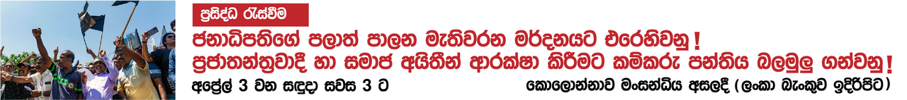 - ආන්ඩුවේ කප්පාදු වැඩ වලට විරුද්ධ වීමට නම් කම්කරුවන්, ක්රියාකාරී කමිටු ගොඩ නඟාගෙන සමාජවාදී ප්රතිපත්ති සඳහා සටන් වැදිය යුතුය