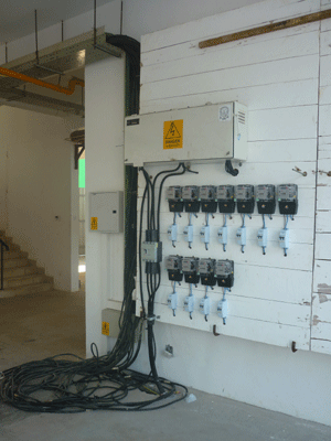 ප‍්‍රධාන විදුලි සැපයුම් පැනලය අසල රැහැන් පොදියක් ඉතා නොසැලකිලිමත් ආකාරයෙන්පටලවා ඇති අයුරු