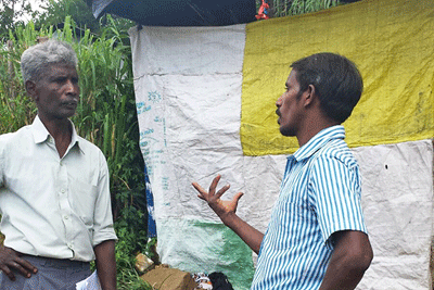 කම්කරු මවක් සහ දියනියපසුගිය වසර පහලොවක් ම තමාට නිවසක් නොතිබූ බව තවත් කම්කරු කාන්තාවක් පැවසුවා ය. “මේ කූඩාරම අටවා ගත්තේ අපි. ඒකේ තමයි ජීවත් වෙන්නේ. අතීත අරගල ගැන මගේ දෙමව්පියෝ මට කියල තියෙනව. සමිති කිසිම දෙයක් දැන් කරන්නේ නැහැ කම්කරුවන් ගේ අයිතීන් රකින්න.”