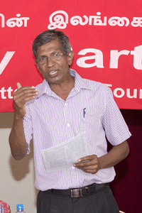 තීරනාත්මක දේශපාලන ප්රශ්නවලට වැඩකරන ජනතාව මුහුන දී සිටින බව ඔහු කීවේ ය. එක්සත් ජනපදයේ පිටුබලය සහිත දේශපාලන කුමන්ත්රනයකින් බලයට පත් වූ සිරිසේන-වික්රමසිංහ ආන්ඩුව හරහා ඇමරිකානු අධිරාජ්යවාදය විසින් චීනයට විරුද්ධව කරන මිලිටරි වැටලීමේ සැලසුම් සමග ලංකාව වඩ වඩා පෙල ගැසෙමින් තිබෙන බව ඔහු පෙන්වා දුන්නේ ය.